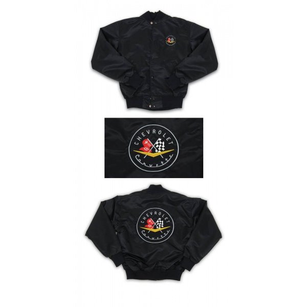 Corvette Satin Jacket, With C1 1956-1957 Logo, Black: