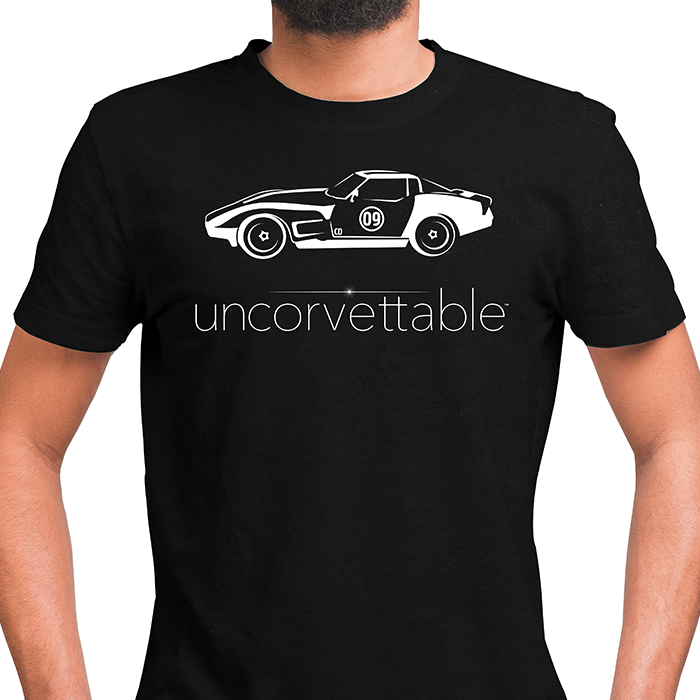 Corvette Depot Uncorvettable Unisex Tee, with 3rd Generation Corvette, Black