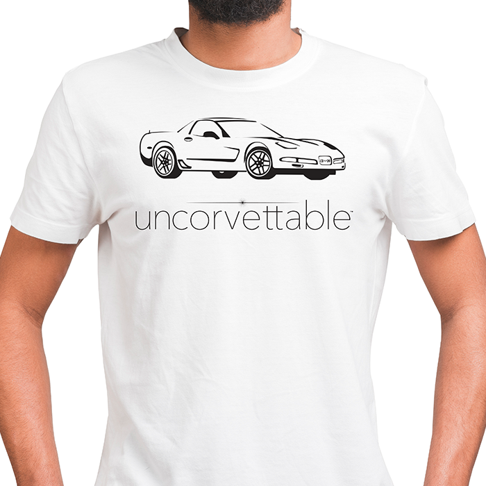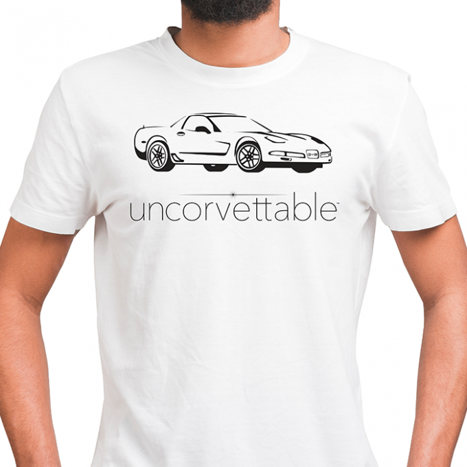 Corvette Depot Uncorvettable Unisex Tee, with 5th Generation Corvette, White