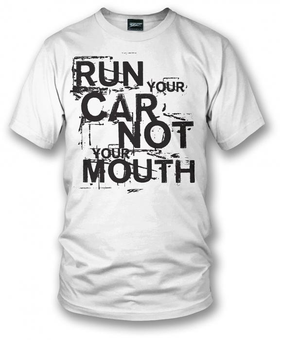 Tired of the guy that just won't keep his mouth quiet? If your car is fast then prove it. You only need to point at this shirt and let it do the talking.