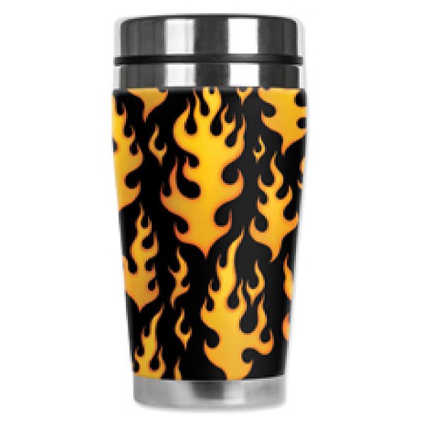 Mugzie® brand travel mugs combine the excellent insulation and water-proof properties of neoprene wetsuit material and the usefulness of a spill-proof, stainless steel travel mug. The Mugzie’s unique, hand-sewn fabric cover is made from 1/4 inch closed-cell neoprene that is covered with soft, water-proof polyester fabric. The stain-resistant cover is printed in hi-resolution and has full-wrap coverage. The Mugzie® has excellent insulating properties to keep beverages hot or cold. The cushioned cover affords a secure grip and eliminates condensation and sweating. Mugzie® travel mug fits in most car cup holders and the counter-weighted bottom provides stability. Use it for both hot and cold beverages. Hand Wash.