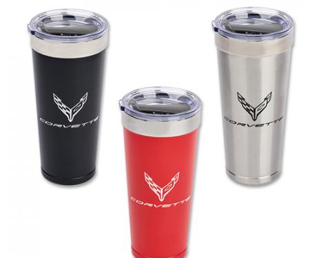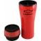 Red 16 oz. double-walled plastic tumbler with black plastic liner. Features spill-proof click open lid. Not intended for use in dishwasher or microwave. NOTE: Not Dishwasher or Microwave Safe