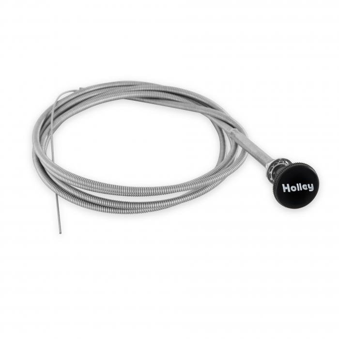 The perfect item to complete your purchase of the Holley manual choke conversion kit. Can also be used on all Holley manual choke carburetors (like the double pumpers) or any other manual choke carburetor. Cable length is 6 feet and the control knob has the Holley name prominently displayed.
