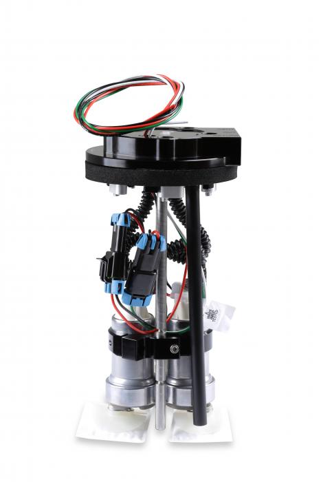 Looking to make a serious step up in the horsepower department? The Holley Dual 450 LPH EFI Pump Module would be an excellent choice. While the name includes EFI, these modules can be used as an upgrade for carbureted systems as well with the proper regulator. The innovative clamping system allows you to locate the module nearly anywhere in the tank while retaining your factory fuel level sending unit. The clamping system allows you to rotate the unit 360 degrees for easier clocking of the plumbing and wiring locations under your ride. 12-173 - Twin 450 LPH - 34A @ 60 PSI, 30A @ 10 PSI EFI  (Gas, 13.5V, 60 PSI) - 1750 HP  (E85, 13.5V, 60 PSI) - 1250 HP Carburetor  (Gas, 13.5V, 10 PSI) - 2200HP  (E85, 13.5V, 10 PSI) - 1550 HP
