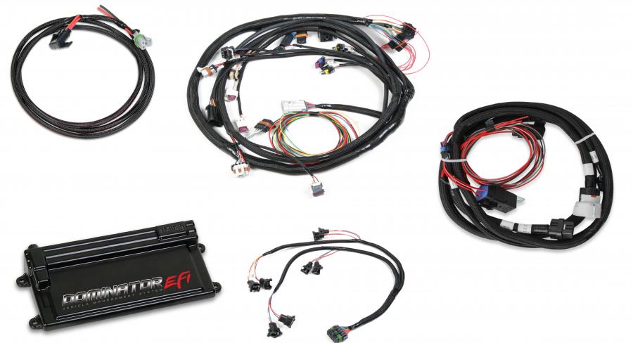 • Kits include the following: Dominator ECU, USB cable, ECU Power Harness, Engine Main Harness, EV1 Injector Harness, Bosch Wideband, ECU mounting hardware