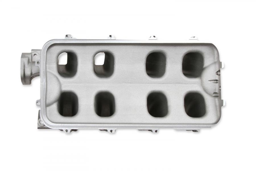 The carbureted Hi-Ram manifold line has a new addition for the 8.2" SBF Ford application. The runner length and tapered cross section design will perform well for a wide range of engine combinations. The engineering team also redesigned the water crossover passage to allow room for distributor phasing. Aggressive, bold, race-bred styling will make bad intentions clear for drag race, muscle car, marine, off-road, sandrails, pulling trucks, track, street-rod applications and more!