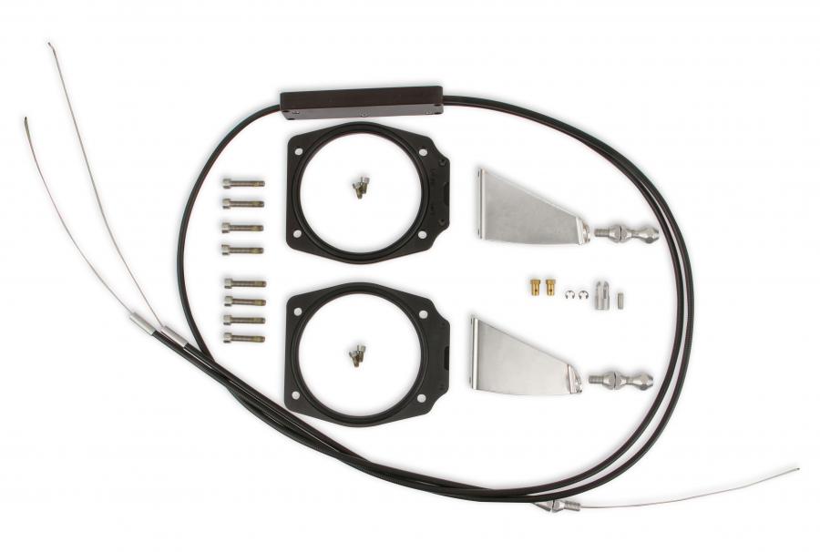 The Holley Sniper EFI Dual Plenum Fabricated intake manifolds since their introduction have proven to be a stout performing street intake. The challenge with the dual plenum intake is an effective throttle linkage solution to handle dual cable driven throttle bodies.
