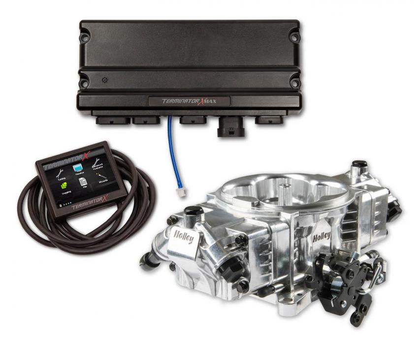 The Terminator X Stealth 4150 EFI system from Holley features 4, 100LB/HR Fuel Injectors capable of supporting up to 650 HP naturally aspirated or 600 HP on forced induction applications. The Terminator X ECU features fuel maps that self-learn and integrated ignition timing control, yielding improved idle stability, drivability, and horsepower at wide-open throttle! Did we mention that the Stealth 4150 also includes transmission kick down provisions for GM TH350/400, 200R4/700R4 and Ford C4/C6 applications? Terminator X Max kits provide plug and play Transmission control for GM 4L60 and 4L80 Transmissions.