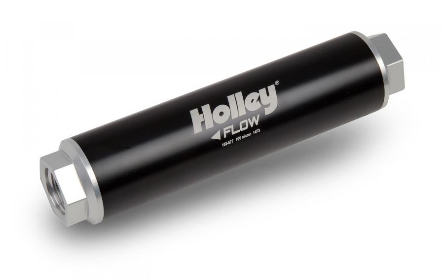 Holley's new VR Series Billet Fuel Filters are part of the complete VR Series Fuel Systems product line. VR Series Billet fuel filters are precision CNC machined from 6061-T6 billet aluminum for strength and durability. They feature a black bright dip anodized body and clear bright dip anodized ends for superior corrosion resistance and good looks. The Holley 162-577 fuel filter features - 12 AN inlet and outlet ports. Replacement elements are also available.