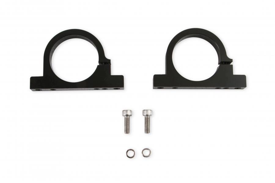 Holley's fuel filter mounting brackets are designed to fit the HP and VR Series Billet fuel filter line. They provide a easy way to securely mount the fuel filter while providing good looks. Available in polished aluminum or black anodized aluminum.