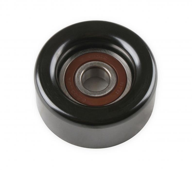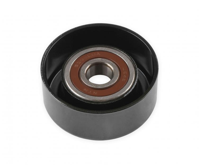 Idler Pulley, Smooth, 2.75" diameter. 76 mm smooth steel idler pulley with ball bearing. For use with all Holley LS accessory drive brackets.