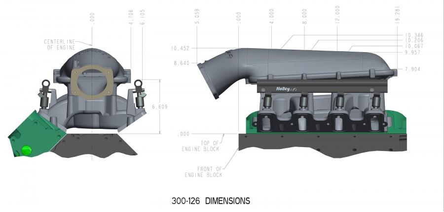 Recalibration of the ECU may be required when using this intake manifold design with OE ECU. Holley EFI LS main harnesses have a map sensor connecter designed for use with an LS1/2 style map sensor. The 558-416 is an adapter harness that can be used to adapt any LS harness that uses a LS1/2 MAP sensor connection to a LS3 MAP, which is recommended for this manifold. NOTE: these manifolds & fuel rails are designed to accept Bosch Style EV-1 or Magneti Marelli Pico fuel injectors (OE LS fuel injectors may not fit properly in the intake manifold & fuel rail assembly). *** The front and rear height measurements listed in the Specs section are referencing the overall height with the top plate installed. Please see the diagrams in the product images for other dimensions.