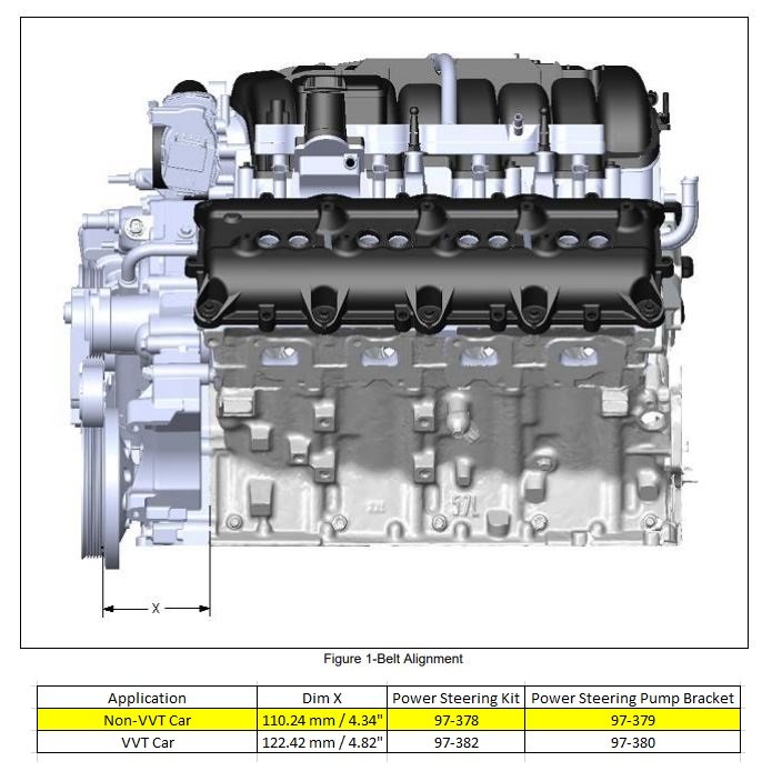 Mounting bracket bolts onto the engine w/ 3 tapped holes on the front of the left side cylinder head (some vehicles came from the factory with electric power steering and may not have the 3 tapped holes in the front of the cylinder head). Fits 2003-2008 5.7L & 2005-2010 6.1L, and some 2009-2013 5.7L & 6.4L Engines w/ 4.34" Damper Pulley Spacing (see Diagram). Fits "Car Style" Accessory Drive Systems.