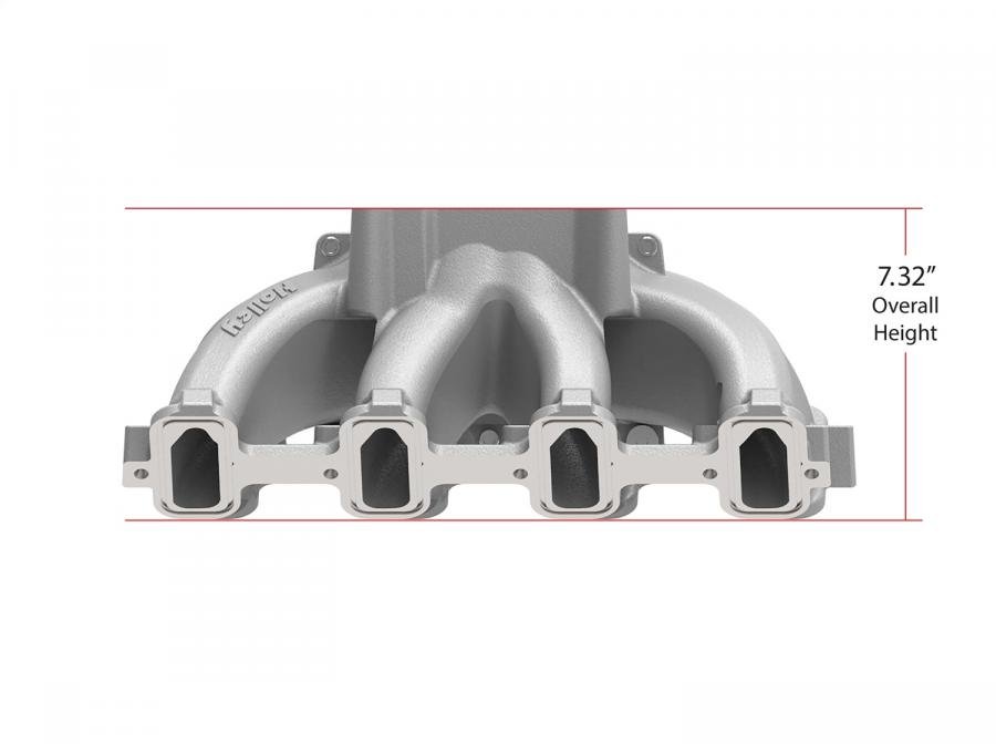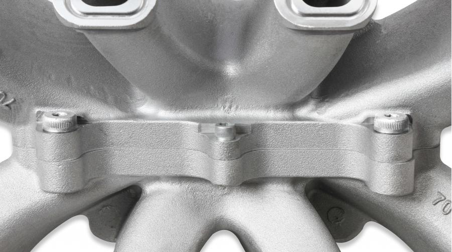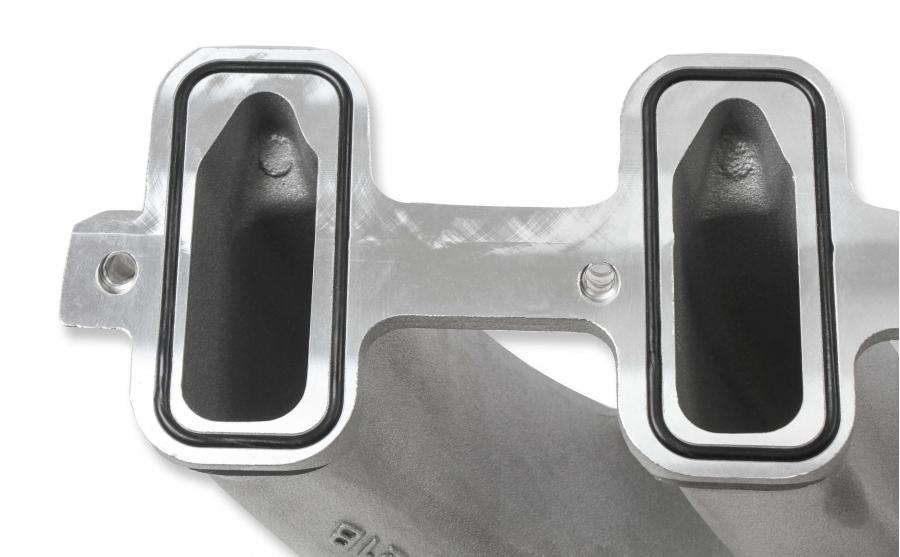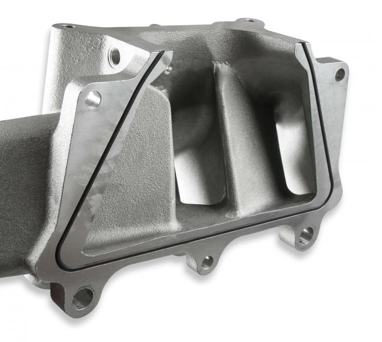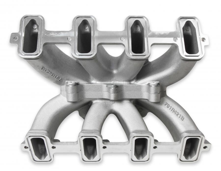 The new Holley Single-Plane Race intake manifold were designed with performance in mind. They feature a race bred, two piece split feature that was previously only found on the most expensive race intakes. The manifold will fit GM LS Gen III engines with cathedral port heads and are intended for 4150 style square bore flanged carburetors or throttle body EFI. The LS Race single-plane intake manifold was designed for hi-performance/racing engine applications, 5.3 to 6.2+ liter displacement, and maximum engine speeds of 6000-7000 rpm, depending on the engine combination. This single-plane design provides optimal performance across the RPM spectrum while providing maximum performance up to 7000 rpm. The Holley LS Race manifold incorporates a split feature, which allows disassembly of the intake for direct access to internal plenum and port surfaces, making custom porting and matching a snap. With shoulder bolt locators and O-ring seal, reassembly is simple and precise. Technical Data:  A-B Height - 7.32" (0° carb flange angle)  Port Size- 3.28" Height x 1.10" Wide  Carburetor Flange - Standard 4150 for up to 1-3/4" diameter throttle bores  As-Cast Runner Cross-Sectional Area - 3.5 in² at the runner entry tapered to 2.9 in² at the flange exit