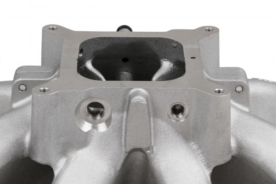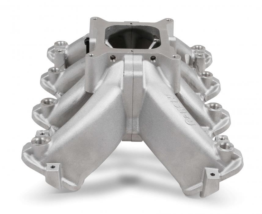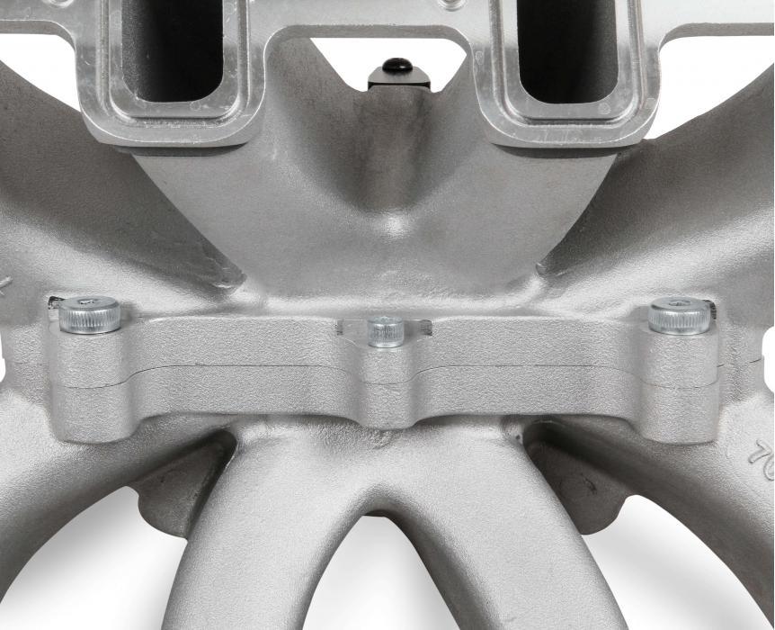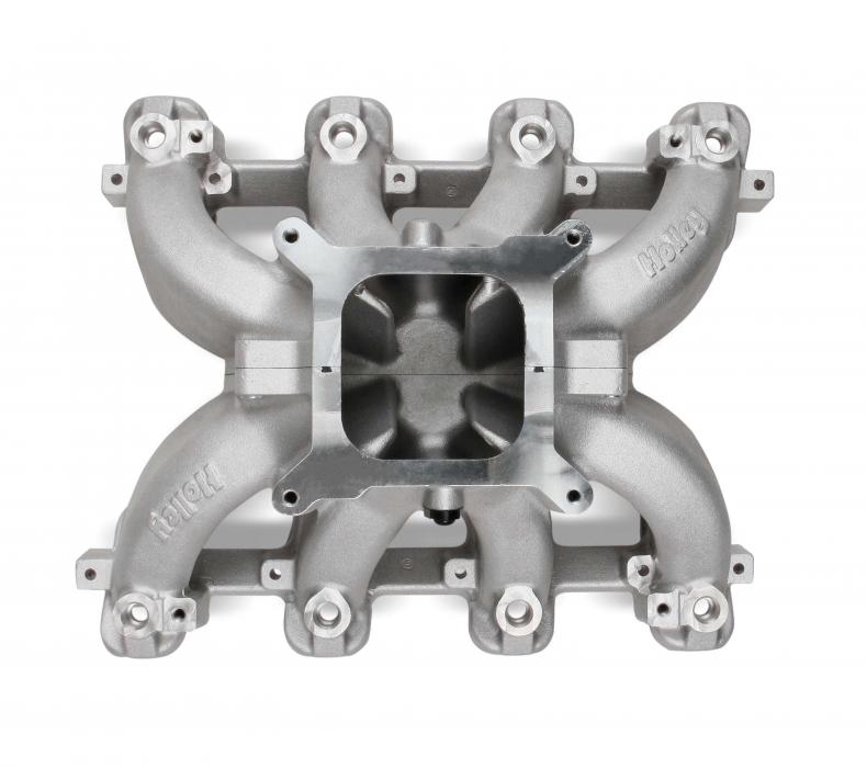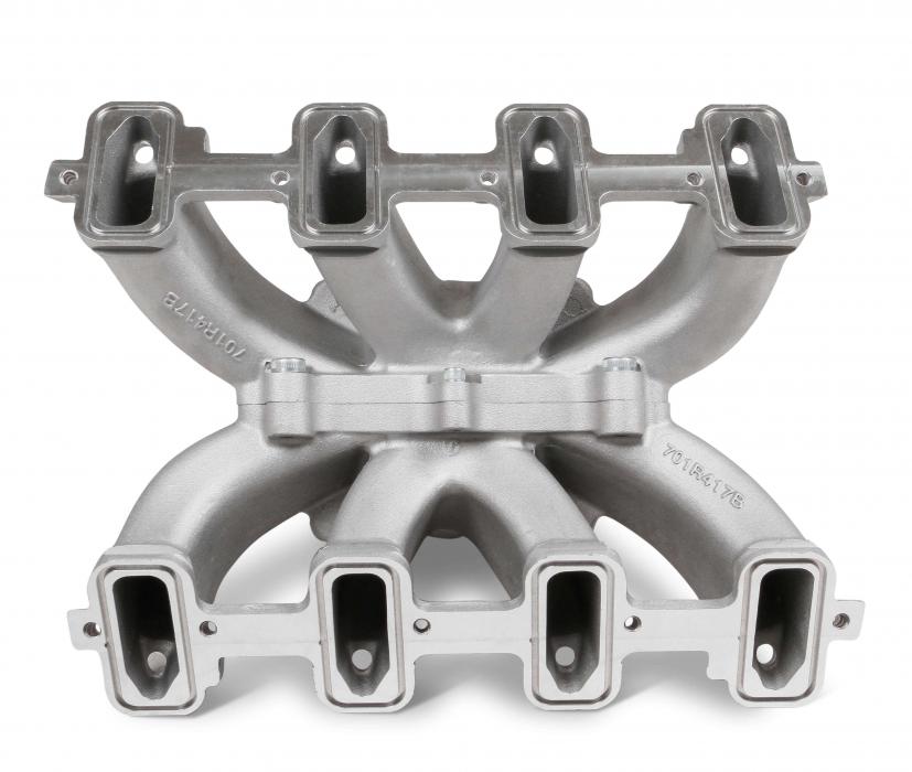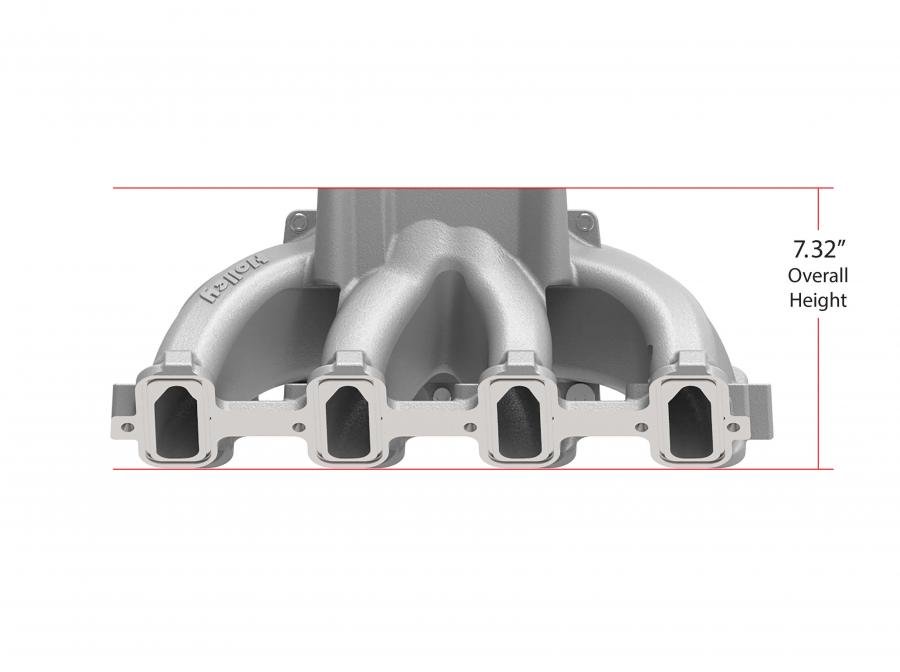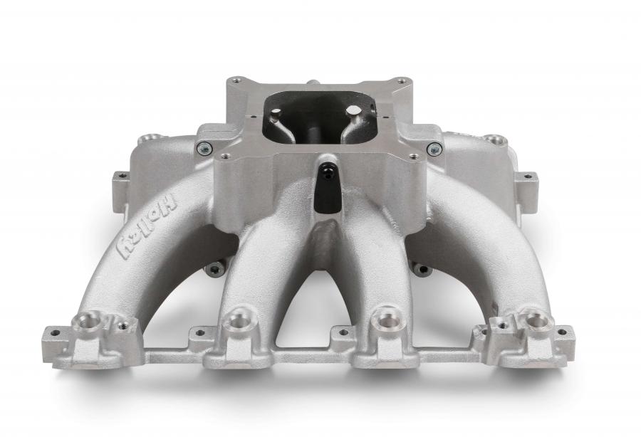 The new Holley Single-Plane Race intake manifold were designed with performance in mind. They feature a race bred, two piece split feature that was previously only found on the most expensive race intakes. The manifold will fit GM LS Gen III engines with cathedral port heads and are intended for 4150 style square bore flanged carburetors or throttle body EFI. The LS Race single-plane intake manifold was designed for hi-performance/racing engine applications, 5.3 to 6.2+ liter displacement, and maximum engine speeds of 6000-7000 rpm, depending on the engine combination. This single-plane design provides optimal performance across the RPM spectrum while providing maximum performance up to 7000 rpm. The Holley LS Race manifold incorporates a split feature, which allows disassembly of the intake for direct access to internal plenum and port surfaces, making custom porting and matching a snap. With shoulder bolt locators and O-ring seal, reassembly is simple and precise. Technical Data:  A-B Height - 7.32" (0° carb flange angle)  Port Size- 3.28" Height x 1.10" Wide  Throttle Body Flange - Standard 4150 for up to 1-3/4" diameter throttle bores  As-Cast Runner Cross-Sectional Area - 3.5 in² at the runner entry tapered to 2.9 in² at the flange exit
