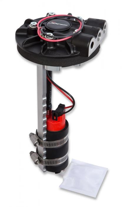 External electric fuel pumps have been the performance standard for decades. They continue to perform well, however, the evolution of fuel pump technology has surpassed them in quiet operation and fuel delivery capabilities that an in-tank module can deliver. Looking ahead to the future, Sniper has designed their latest retrofit pump module especially for the carbureted applications. The module design is very similar to the existing EFI pump modules using a 340 LPH pump, but includes a built-in regulator for lower fuel pressure that carburetor applications require. Now you can convert your factory tank or fuel cell to an in-tank fuel system quickly and easily! The conversion is easily accomplished with basic tools and requires no welding or fabrication. The aluminum module design includes a die cast pump hanger bracket to control pump vibration while also providing a low profile design to fit where space is at a premium. Once installed, hook up your fuel lines and your power source/ground and you're off and running! NO hassle! An added bonus is that you can upgrade this module if you eventually change to an EFI system by changing the internal regulator. Supports up to 900 Carb HP (@ 6 PSI at 13.5 Volts / 10.4 AMP Draw) of course there are many variables, estimates are based on gasoline. Individual systems will vary based on fuel system design, fuel cell location, etc...