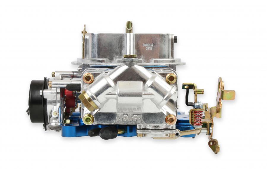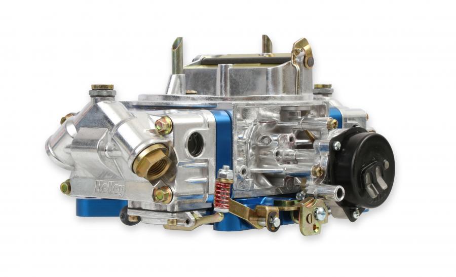 ULTRA light Aluminum construction for 43% weight savings ULTRA shiny Tumble polished finish holds shine longer ULTRA strong Billet metering blocks & base plates ULTRA cool Blue anodized billet aluminum metering blocks and base plate ULTRA easy Built in sight window for simple float adjustments ULTRA fast High-performance fuel curves Holley Double Pumper® carburetors are a perfect performance upgrade for hot street cars and race vehicles. Double Pumper carburetors are an American icon when it comes to performance carburetors. From their roots as the premier carburetor on many factory muscle cars to powering thousands of vehicles across the finish line, the Double Pumper is a great choice whether you are burning up the street or the quarter mile. The Ultra Double Pumper™ Carburetors feature all aluminum construction and are equipped with metering blocks and a base plate made from 6061-T6 billet aluminum. They weigh in at approximately 5 lbs. less than a comparable zinc carburetor. The new Ultra Double Pumper Carburetors have an enhanced fuel curve for optimum performance, with many more features such as aluminum construction; anodized billet aluminum metering blocks and base plate; 4 corner idle for precise idle control; dual accelerator pumps for additional fuel under initial acceleration; mechanical secondaries for great performance; clear fuel level sight plugs for easy, no mess fuel level adjustments; Ford automatic transmission kickdown for use on popular Ford transmissions; four vacuum ports for all necessary vacuum accessories; and for the first time on a Double Pumper, factory pre-set electric choke for easy, fast cold start-ups. The clean, polished look coupled with Blue metering blocks and throttle body will certainly set your ride apart whether you are at the show or track.
