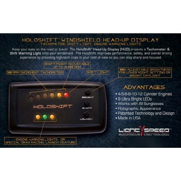 light, launch control, and engine warnings. The HoloShift was designed to optimize driver performance through intelligent