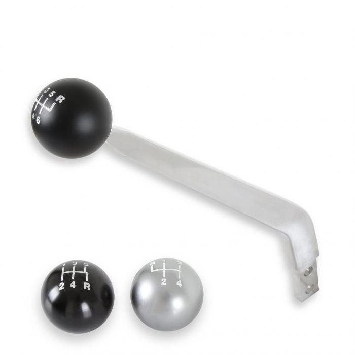 This Hurst 2-inch diameter billet shift knob keeps it simple with an anodized gloss black finish and no shift pattern engraved. Utilizing a primary M16 x 1.5 thread size, it also includes adapters for 3/8-16 and 3/8-24 thread sizes as well as jam nuts. Similar shift knobs are available in various colors, billet or ABS, and with engraved 4, 5, or 6-speed shift patterns.