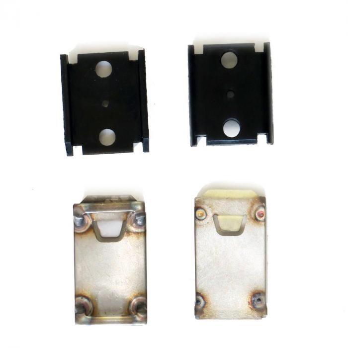 Hurst Shifter Handle Insulators and Metal Wedge Lock Kit. These are made to exact specs as originals for a perfect fit. These are used to lock the shifter handle into the body of the shifter. They are always destroyed when taking apart the shifter and the rubber is worn and cracked