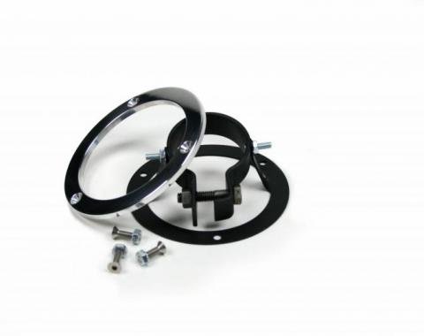 This swivel ball style polished floor mount has a trim ring for the engine compartment side. It includes all the necessary hardware for installation. These Floor Mounts are only for aftermarket columns. Chrome and Black Powder Coated…