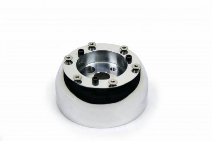 The 1956-62 Corvette 6-bolt adaptor is made to adapt a stock 1956-62 Corvette steering wheel to the tapered, splined top shaft of an ididit/GM steering column. Adaptor comes with mounting hardware and horn wire. Measures 1.79? tall.