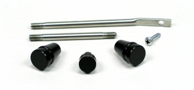 This kit includes a turn signal lever with knob, a tilt lever with knob, and a 4-way flasher knob. The turn signal lever is flattened and attaches to the column with a single screw. The kit fits 1969 and newer GM and Chrysler columns and is available in three different knob styles: Standard, Retro, and Deco (Deco style knobs are only available in polished aluminum finish).