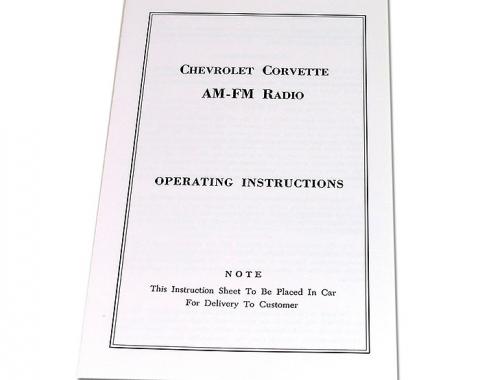 Reproduction Of Original This Corvette reproduction radio instructions booklet has been manufactured to original factory specifications using today's modern manufacturing techniques. You will find the fit, finish and function will work…