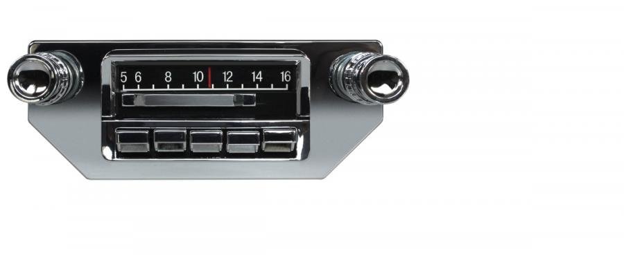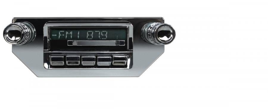 Custom Autosound's Slidebar Radio provides enthusiasts with a completely authentic looking classic car or truck stereo without sacrificing the latest in technology. Best of all it will fit in your vehicle's dash without any modifications required. The Slidebar Radio provides the best of both worlds, a true working slidebar display and a full-featured digital display in the same stereo. Simply slide the bar in the center of the radio to the right and hide the analog slidebar revealing a full-featured digital display underneath. The slidebar is designed with large OEM style push-buttons to compliment the look of your classic car. Its digital display provides seven backlit color options designed to match the color of your dash instrumentation. When it comes to technology the Slidebar is designed with the best features available including Bluetooth, a USB input for flash drives and a Dock for your iPod. When connected to these devices the radio's digital display will display artist, song, album and allow song navigation through the radio itself. The slidebar is compatible with AD2P which enables bluetooth streaming from your enabled phone or device as well as hands-free mobile calling through the vehicles speakers & built-in microphone. With 300 watts peak the radio provides plenty of power but additionally contains four pre-outs and one subwoofer out. The Slidebar also comes with Aux-in for optional satellite radio as well as our optional compact CD/DVD player.