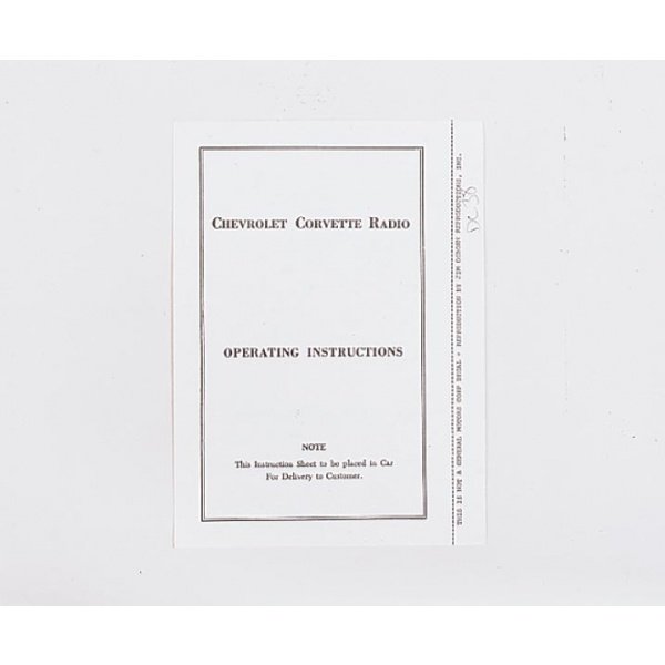 This Corvette reproduction radio instructions booklet has been manufactured to original factory specifications using today's modern manufacturing techniques. You will find the fit, finish and function will work superbly for your restoration.