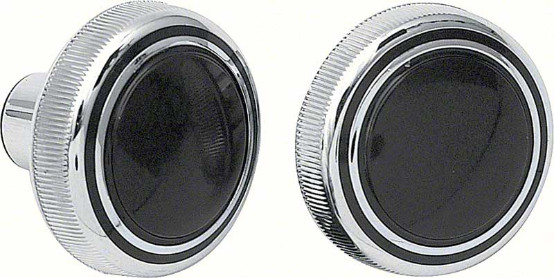 OER® reproduction of the original volume and tuning control knobs designed for use with all 1968-70 factory original AM or AM/FM radios. Each knob is a perfect replication of the original. Manufactured in zinc die-cast metal with black and chrome trim. Will fit and install in any original GM in-dash radio for models listed.