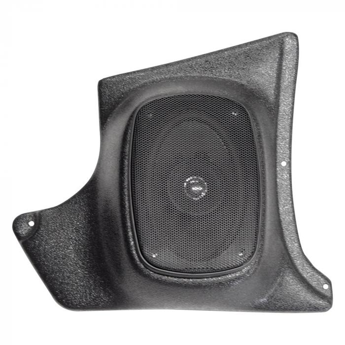 Kickpanels with speakers were developed by Custom Autosound in the 1980's to enhance the sound quality of your radio by adding custom speaker assemblies to classic cars and trucks. While our kickpanels enhance the interior appearance of your ride, they provide great sound and install with no modifications to your vehicle. We've designed them to custom fit perfectly with the door panels on your classic car or truck. We build our kickpanels with black ABS plastic and can be painted to match the interior of your vehicle. The most popular kickpanels come with built-in CAM 6 1/2" coaxial 2-way, 80 Watt speakers.