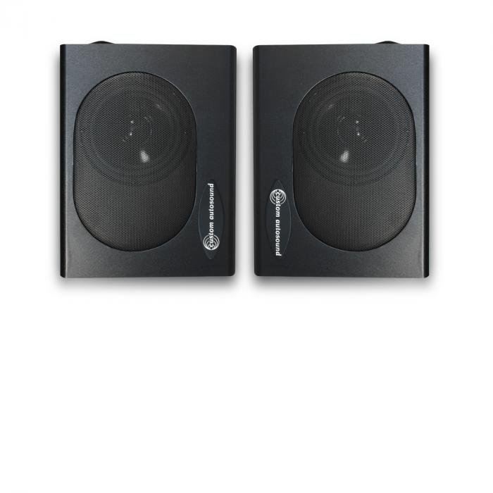 Replacement Speakers Compact 8 x 11 x 2-7/8 High Design Fits Well Under Most Front Seats Ideal For Convertibles Or If You Do Not Wish To Cut Rear Deck One 5-1/2 Woofer & 2 Tweeters Per Speaker 120 Watts