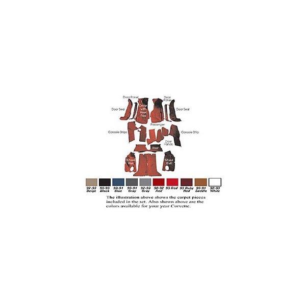 ACC brand reproduction carpet is the best you can buy. In terms of originality, fit and quality it simply can't be beat. To start with the carpet they use is the original 16 oz. cut-pile which is then attached to a sound deadening and heat insulation mass back. Next, the carpet is molded to fit the contours of the floorboard perfectly. And to put the finishing touches on the carpet set ACC provides serged bindings where applicable, includes door panel carpet strips, a molded plastic left foot rest and molded heel pad.