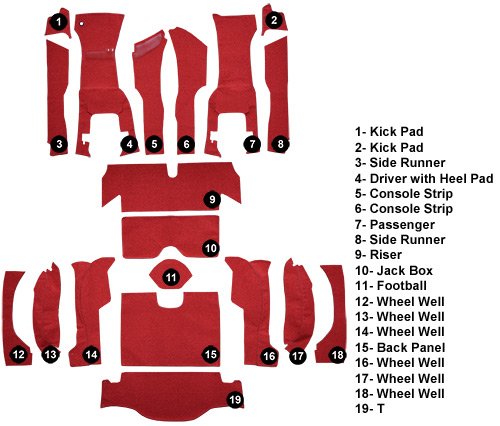 • No pad on 63-4 Corvettes. Latex or foam back only.