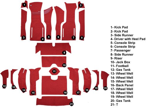 Auto Custom Carpets Original Equipment Replacement Carpet Kits are crafted from heavy duty materials designed to last for many years of extensive use. These long-wearing carpets will surely complement your vehicle's interior with a wide variety of colors to choose from so you can get a perfect match for your vehicle’s interior. Known worldwide as a top automotive replacement carpet manufacturer, Auto Custom Carpets continues to provide excellent products to its customers. Auto Custom Carpets have always been made in America and now operates 3 factories, including making moulded carpets in the same factory where moulded carpets were pioneered in 1958. Auto Custom Carpets simply offers the widest selection of replacement automotive carpet in the industry today and is committed to manufacturing all products in USA.
