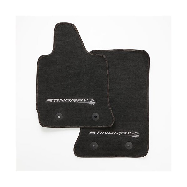 Stingray Front Floor Mats, Black With Mojave Stitching Stingray Logo, 2014-2017: