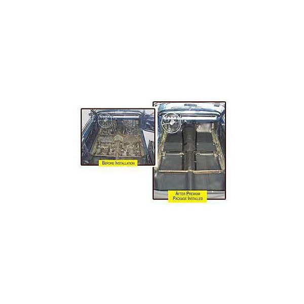 This new sound deadening package is the new standard in classic car sound deadening. As you know, factory insulation was minimal and allowed for a great deal of noise and air to transfer through your car which is why you experience so much additional vibration and vehicle noise on the older cars, as well as losing precious heat and air conditioning when running these systems. Since then, there have been many products developed for new cars to reduce road noise and better overall insulation creating a quieter ride, better heat and cooling retention in addition to a more comfortable interior environment. The dampening material in our package is over 200% more dampening than stock asphalt materials. Our main floor material is a composite with a solid vinyl barrier bonded to a foam layer which acts as a spring to reduce noise and absorb shock in the car when driving, creating a much quieter vehicle. This is the same type of material being used in newer car factory designed systems. We then use a heat formable material for the door panels that will actually take the shape of your door shell with a heat dryer, this will seal out vibration through your door and lost air when heating and cooling your car. Finally, we have a foam material with lead core that can be hand shaped to mold to the contour of your tunnel hump. Normally, you would use a flat sheet and try to wrap over a tunnel hump which cannot pick up the shape of the factory tunnel. Our premium sound deadening package will make your parts fit tighter and will give you a huge improvement in the reduction of noise and vibration. You get the quiet ride you want with the good looks and fun of a classic car, the best of both worlds! The kit includes enough material to do a complete two door car: floors, doors, rear quarter area and behind rear seat. Kit includes: one 37 X 57 Dampening sheet, 10 each 13 X 30 Aluminum dampening sheets, one barrier pad with lead core for forming to the tunnel hump, and four sheets of the loaded vinyl with foam padding. Additional materials can be ordered separately for four door applications.