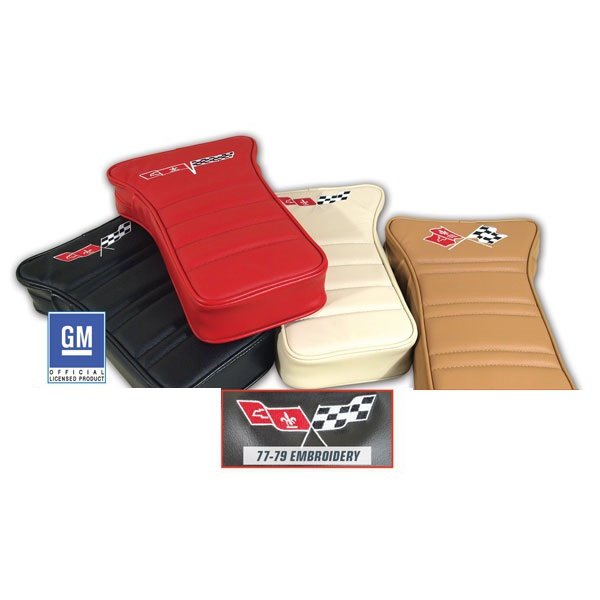 These embroidered center cushions are available in all original interior colors, now beautifully embroidered with the GM-Licensed Logo. Simply place the armrest on top of your park brake console and make the cockpit more comfortable for driver and passenger. Does not interfere with hand brake operation.