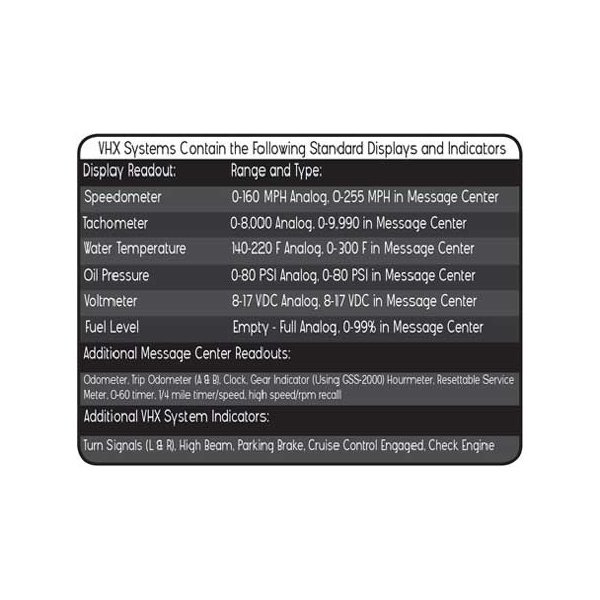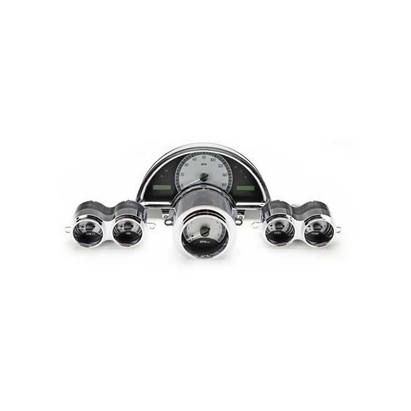 The new VHX Systems fit directly into the stock instrument pods of a 1958-62 Chevy Corvette without modification, adding a wealth of features to this iconic vehicle. Chrome triple-plated machined aluminum gauge bezels round out this package. Fully lit needles, backlit faces, and highly visible LCD message centers are a few of the things that you can see which set the VHX Series apart from yesterday's traditional approach to instrumentation. A few of the features which you don't normally see are the micro-controlled precision stepper motors, solid state sensors for unparalleled accuracy, and user-customizable display feedback.