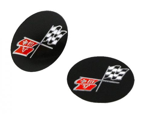 These C3 Corvette door handle decals are aluminum. The crossed flag design is debossed. The black, red, and white parts are painted, whereas the outlines of the flags are shiny, unpainted aluminum. The rear of the emblem is coated with…