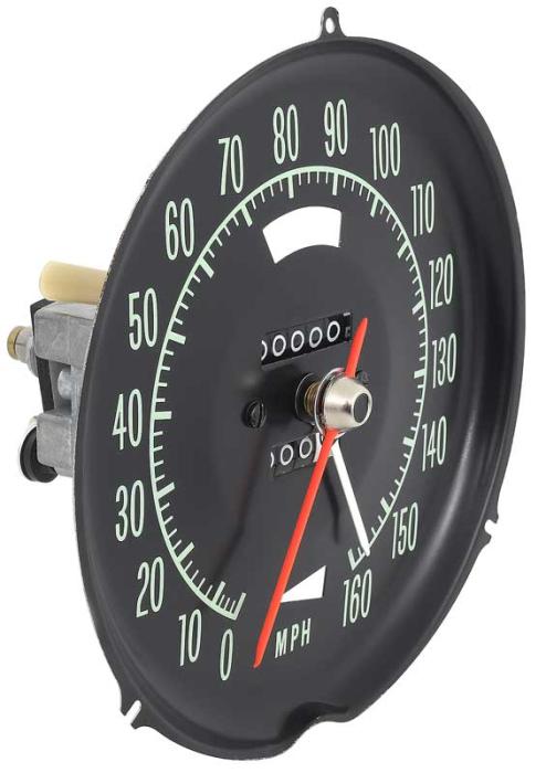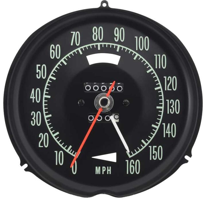 Quality reproduction of the original 160 MPH speedometer designed for use with 1968 Chevrolet Corvette models with speed warning (buzzer option). Each speedometer is manufactured to replicate the original in every detail including correct speedometer face with light green markings. Includes LH turn signal indicator and speed warning device. Threaded cable connection. Each speedometer is correctly calibrated bench-tested for accuracy. Will fit and function as original. Note; Refer to part number # 6492697 for 1969 with push-on cable connection.