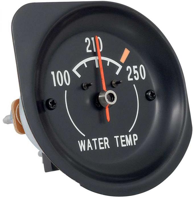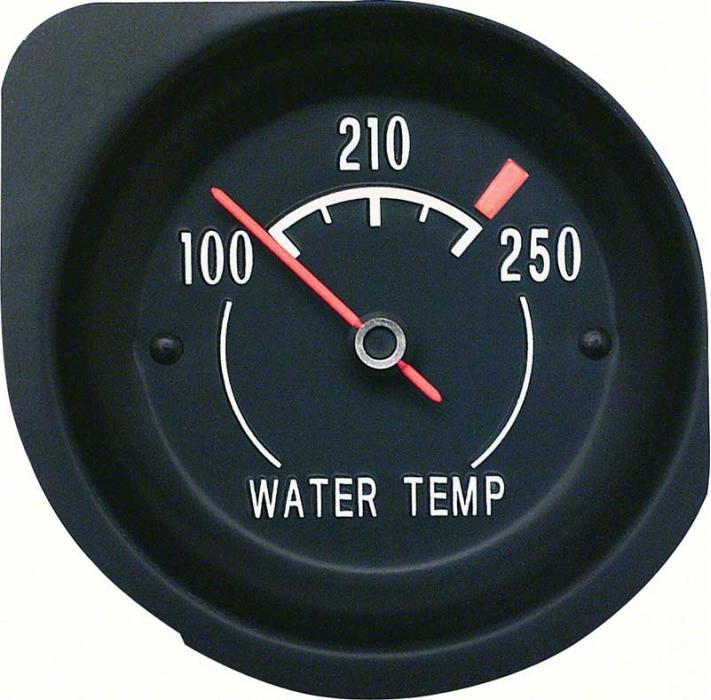 Reproduction of the original instrument cluster temperature gauge designed for use with 1972-74 Chevrolet Corvette models. Each gauge is manufactured to original factory specifications featuring a silk-screened replica of the GM markings in white which was used in 1972-74 models. Also includes a correct red needle that matches the existing gauges. Will replace the original non-working gauge exactly.