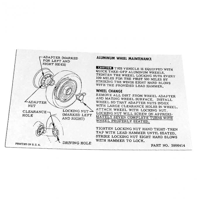 Corvette Instructions, Knock Off Wheel-Glovebox, 1964-1966: