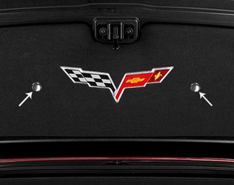 Dress up your Corvette with our Chrome - Trunk Lid Liner Fastener Covers. These trim pieces are designed to fit over the stock black trunk lid liner fasteners and add a clean stylish look to your Corvette. Compliments our C6 Rear View…