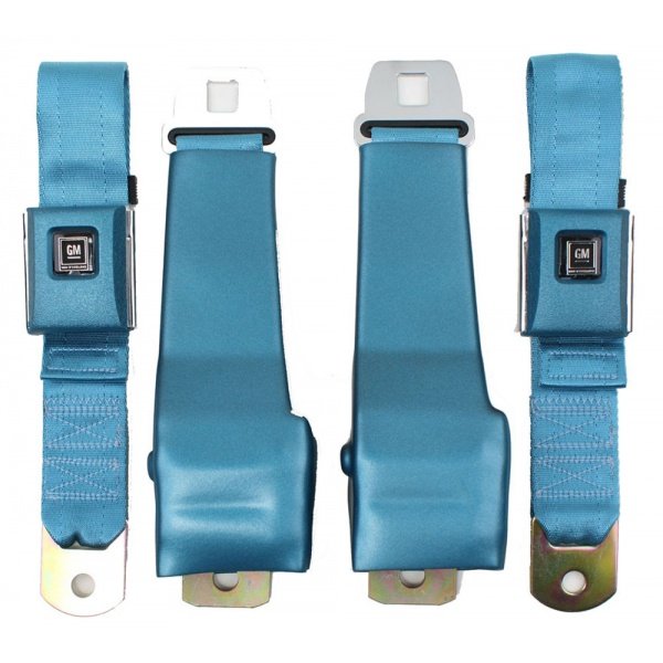 These original looking lap belt only seat belts feature the GM style push button buckle without the GM Logo.