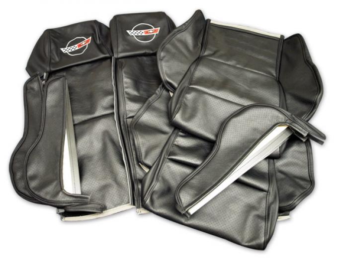 CA 1984-1988 Chevrolet Corvette Embroidered Leather Seat Covers Sport 420520E | 59-96 Black: