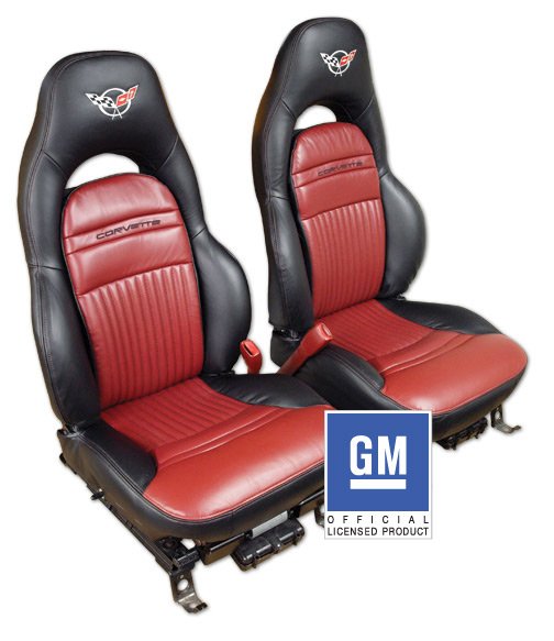 CA 1997-2004 Chevrolet Corvette Embroidered Custom 100% Leather Seat Covers Sport Black & Firethorn 43870E: