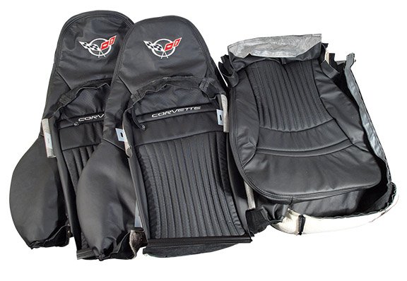 CA 1997-2004 Chevrolet Corvette Leather Seat Covers Embroidered Headrest 100% Leather Sport 462290E | 97-04 Black