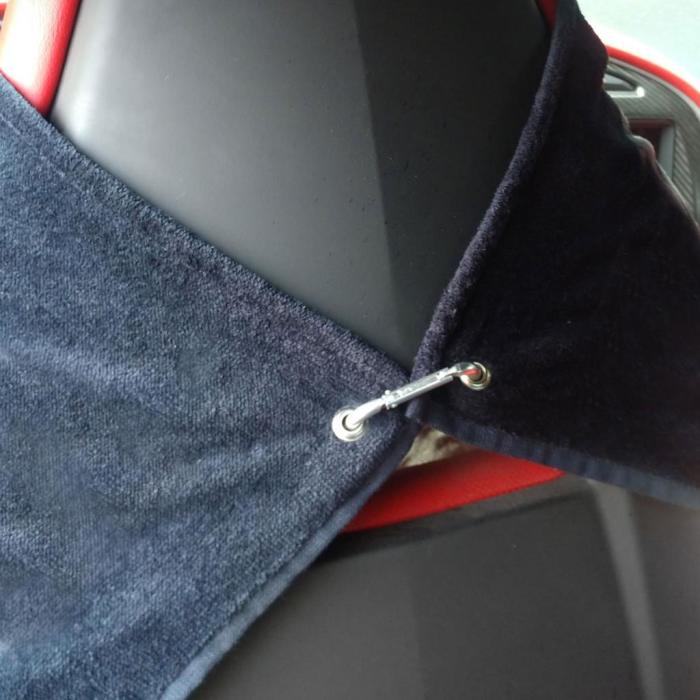 The Towel2GO provides double the protection for your C8 Corvette as a great option to protect your seats and your bumper when loading or unloading your trunk/cargo area! This 100% cotton terry velour towel drapes over your seats, wraps around the headrest, and secures with the provided carabiner clip through the pre-installed grommets.